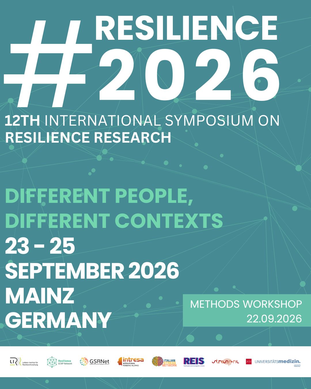 The 12th International Symposium on Resilience Research (#resilience2026) is taking shape and will take place again in Mainz, Germany, from 23-25 September 2026. Under the motto DIFFERENT PEOPLE, DIFFERENT CONTEXTS, the symposium will discuss resilience in collective trauma, sex and gender differences, ethical and societal aspects of resilience research, and much more. Plus: Free methods workshop “Resilience quantification in humans” and many opportunities for early-career researchers.